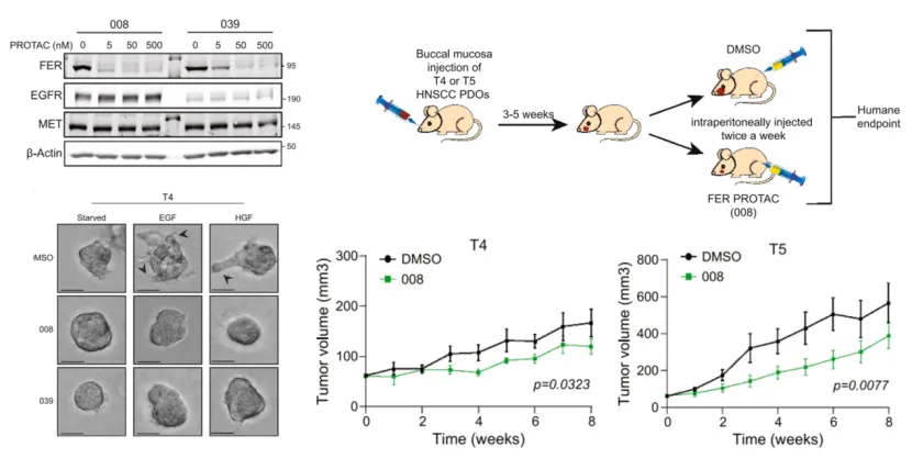To verify the therapeutic potential of FER as a drug target, the research team designed and synthesized a FER-specific PROTAC degrader for target validation and pharmacodynamic studies. In both in vitro organoid and in vivo xenograft models, the FER-PROTAC efficiently degraded the target protein, markedly inhibited growth factor–induced tumor cell invasion, and effectively suppressed tumor growth in vivo.